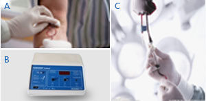 泛发型白癜风治疗过程示意图 A取血 B净血 C血液回输