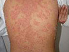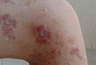 浑身上下是红色的丘疹,溃破后流黄水,又痛又痒又难看。