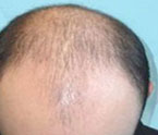头部的后侧和两侧,脱发现象严重,只有头顶一处留有稀疏的头发